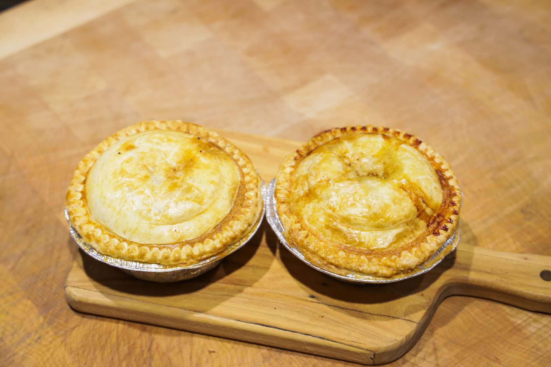 MINCED BEEF, ONIONS, CARROTS, PEAS, SALT, PEPPER, GRAVY GRANULES, LARD, BUTTER, WATER, PLAIN FLOUR, EGG, BEEF BOUILLON(SALT, VEGETABLE FATS (PALM, SHEA BUTTER, SAL BUTTER), POTATO STARCH, SUGAR, BEEF EXTRACT (4%), YEAST EXTRACT, FLAVOURINGS, ONION POWDER, CARAMEL SYRUP, MALTODEXTRIN, PARSLEY, CARROTS, FISH, SPICES (PARSLEY ROOTS, CELERY SEEDS).